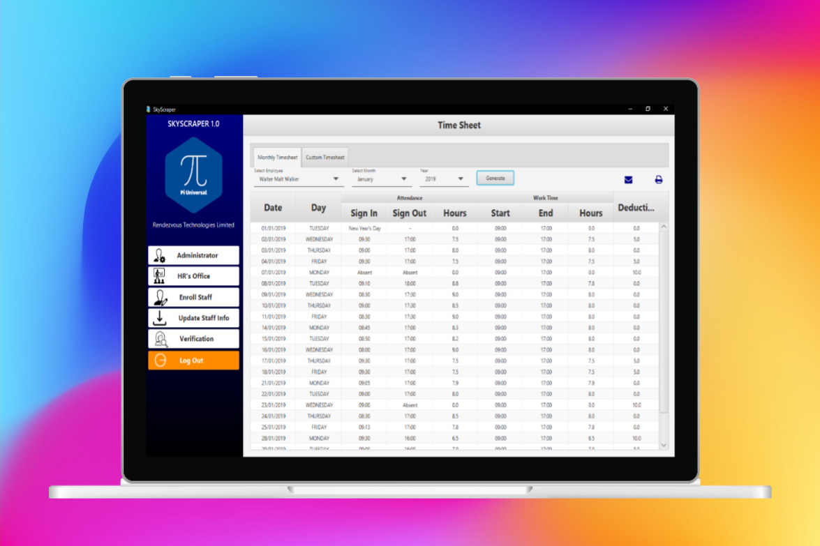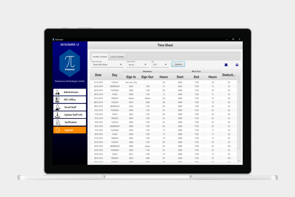 This app enables employers manage their staff attendance using fingerprint biometric verification.